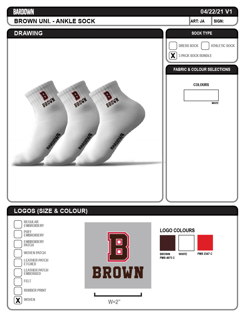 Brown University Ankle Sock SK-0001